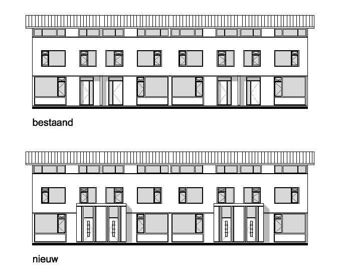 Bovenstaand: bestaande toestand Kerschoten: woningen hebben veelal uitbouwen aan de achterzijde en zijgevel.