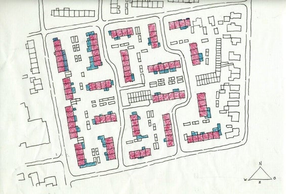 Bovenstaand: bestaande toestand Kerschoten: woningen hebben veelal uitbouwen aan de achterzijde